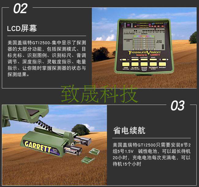 商品簡介:GTI-2500.蓋瑞特公司TreasureVision金屬探測器的基本功能是在探測寶藏時(shí)可以目標(biāo)識(shí)別、判定大小、深度搜尋和識(shí)別能力等功能。GTI 2500的微處理器控制電路已被廣泛稱贊。