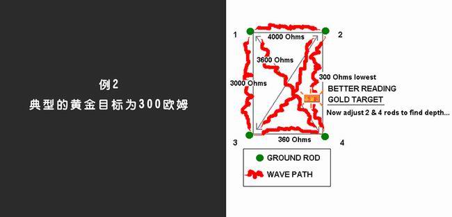如下圖所示,當(dāng)4根金屬棒的位置相同時(shí),金色和銀色目標(biāo)對Pro Accumaster VII定位儀顯示低的OHM值,并指向“黃色”/貴金屬區(qū)域。