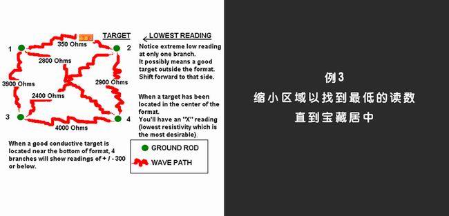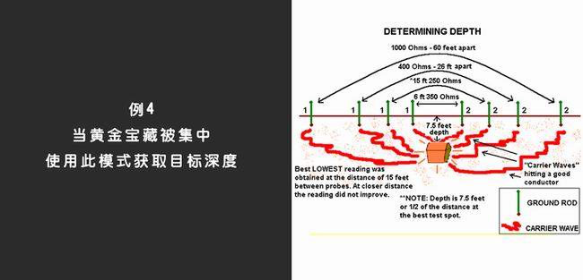 為了找到寶藏深度,首先將目標(biāo)居中,然后按照例子4的方法。