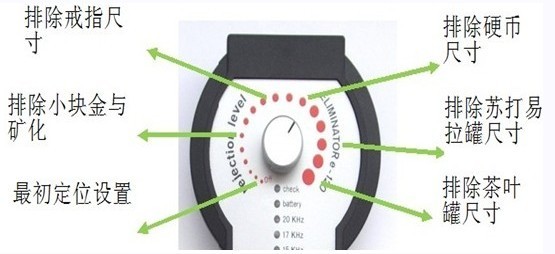 用戶通過使用“抑制電平”旋鈕調(diào)整來選擇消除器e-120 B過濾器的干擾抑制速度,以消除礦物質(zhì)-金塊、硬幣大小、蘇打罐大小或胸部大小的物體。