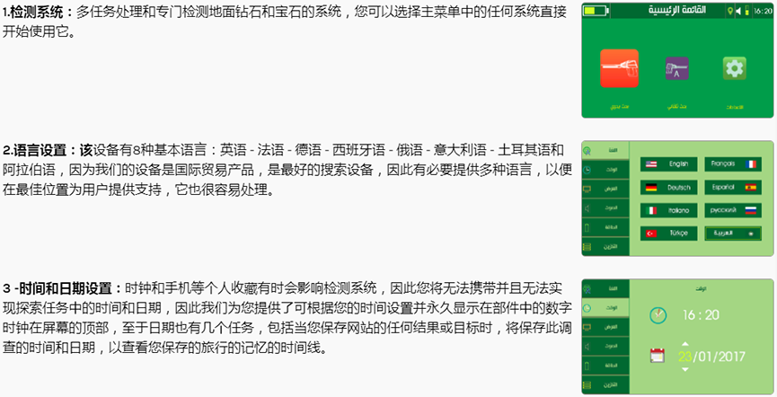 該設備具有一個特殊的搜索界面,可以在搜索屏幕上準確顯示搜索站點的結(jié)果和坐標以及目標路徑的方向,并詳細了解您的目的地和到設備的路線,并配備兩個集成系統(tǒng),用于遠程手動和自動搜索。