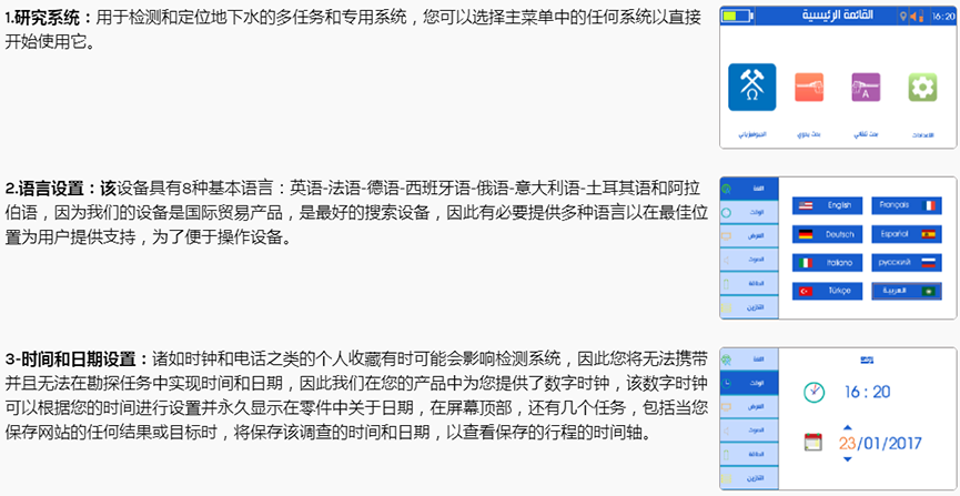 ? 這就是所謂的自動系統(tǒng),這是世界上初次使用遠程地下水檢測器的情況,我們?yōu)槟峁┝吮槐O(jiān)測目標的自動檢測系統(tǒng),以便目標名稱自動出現(xiàn)在屏幕上,并且非常有趣的是確定距支點的目標距離該設(shè)備非常精確,可以作為跟蹤和自動檢測的系統(tǒng),而且用戶在定位目標之后可以自動知道結(jié)果在屏幕上出現(xiàn)的深度。