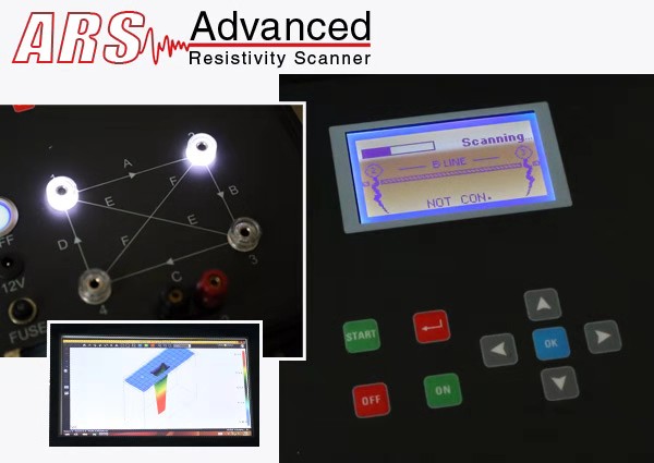 在地面中間插入至少2個探頭。將設(shè)備放在探頭中間。探頭彼此越遠,掃描越深。這就是為什么電纜長度很重要的原因。如果您將2個探頭放置在離控制箱6米遠的地方(12米電纜),那么您的掃描深度可達6米。您還可以使用4個探頭覆蓋更多地面。標(biāo)準設(shè)備包括4根25米的電纜/探頭,這意味著如果使用4個探頭,則可以使用2個探頭達到50米的深度,25米的深度。您可以購買可選的4x50米(深度可達100米)和4x100米電纜,深度可達200米!請記住,ARS通過圖層分析土層,這意味著如果您可以在預(yù)定深度處識別腳下的物體。如果你選擇掃描5米深處的東西,你不會看到低于或高于5米的東西。要查看深度為6米的情況,您必須通過調(diào)整電纜長度來掃描6米的層。