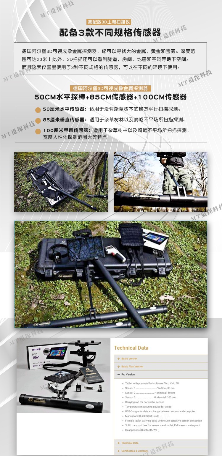 德國阿爾堡3D可視成像金屬探測器,您可以尋找大的金屬,黃金和寶藏。深度范圍可達(dá)20米!此外,3D掃描還可以看到隧道,房間,地窖和空洞等地下空間。