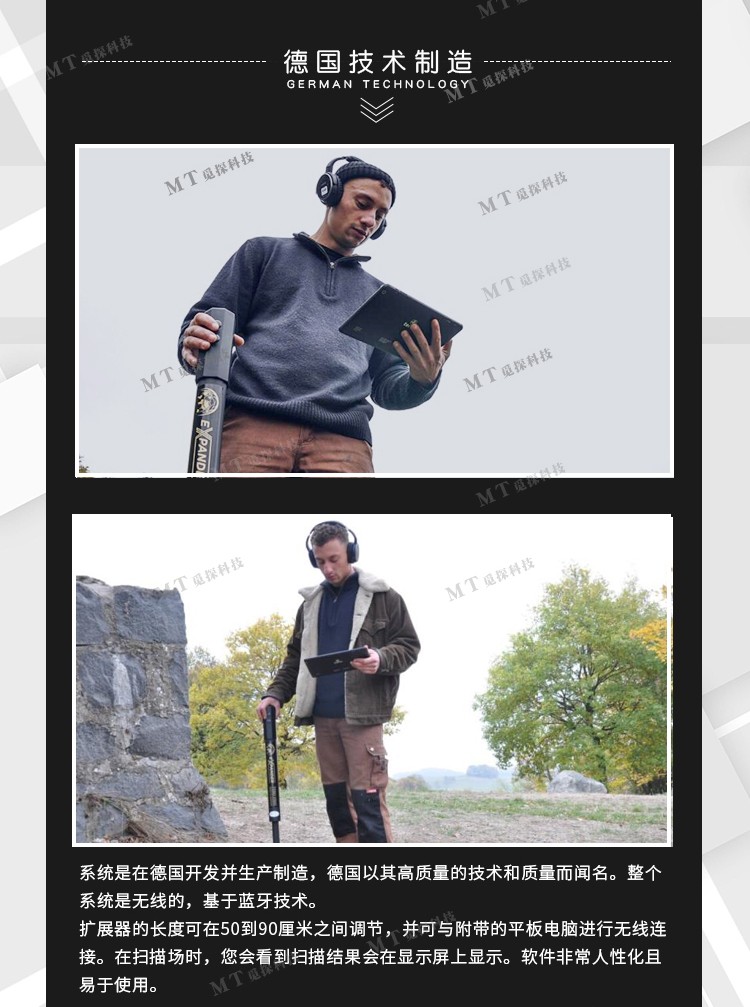德國阿爾堡3D可視成像地下金屬探測儀垂直伸縮版可調(diào)節(jié)50至90厘米
