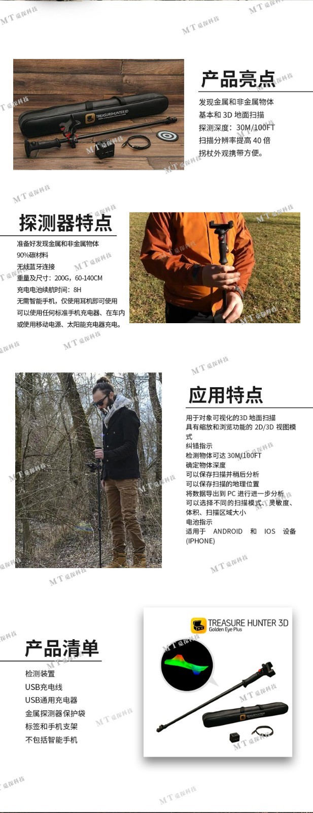 GoldenEye黃金眼無線手機(jī)3D成像可視地面掃描儀拐杖式金屬探測器