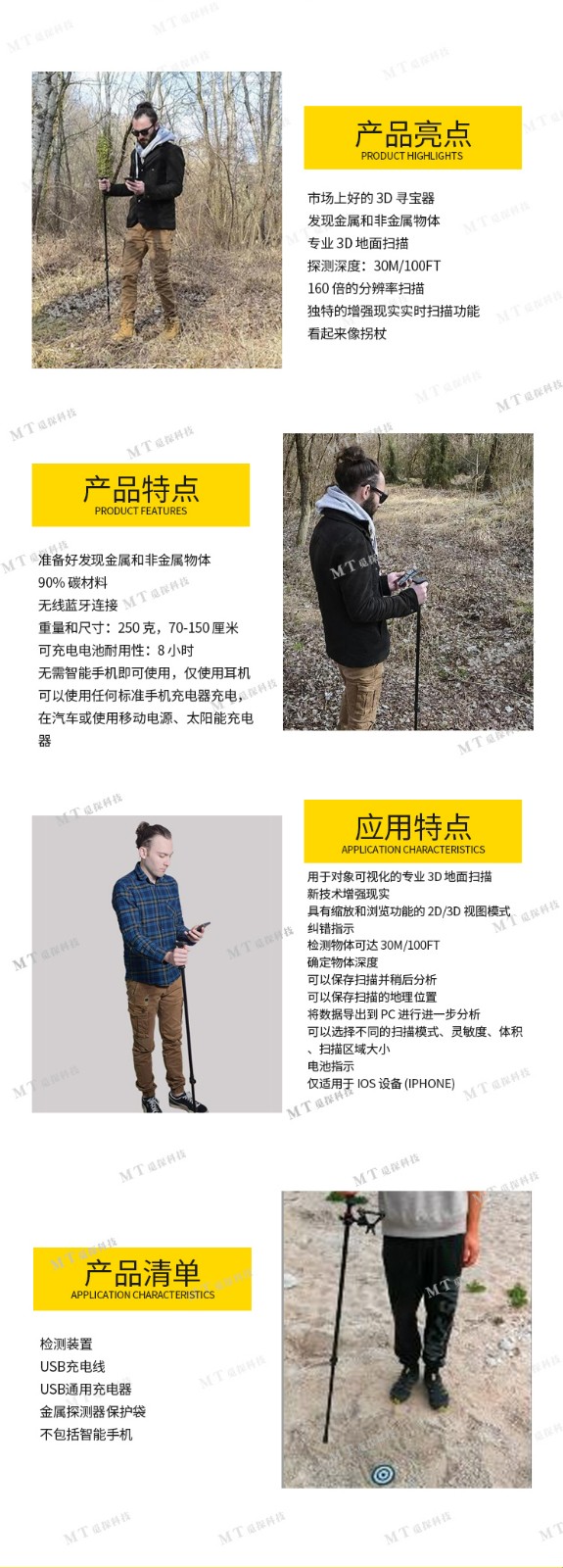 進(jìn)口加強(qiáng)型黃金眼無線手機(jī)3D成像可視地面掃描儀拐杖式金屬探測器