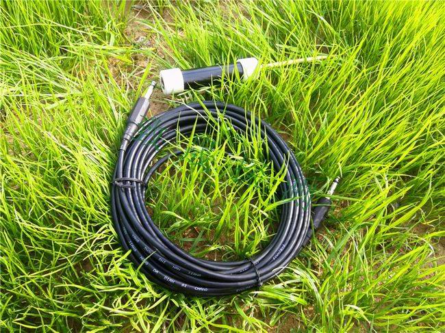 把箱子里的線頭直接插到地線插孔里面,把另一頭插到黑色的地線上然后把線放開。把黑色的地線插到離主機(jī)9米左右的地方。