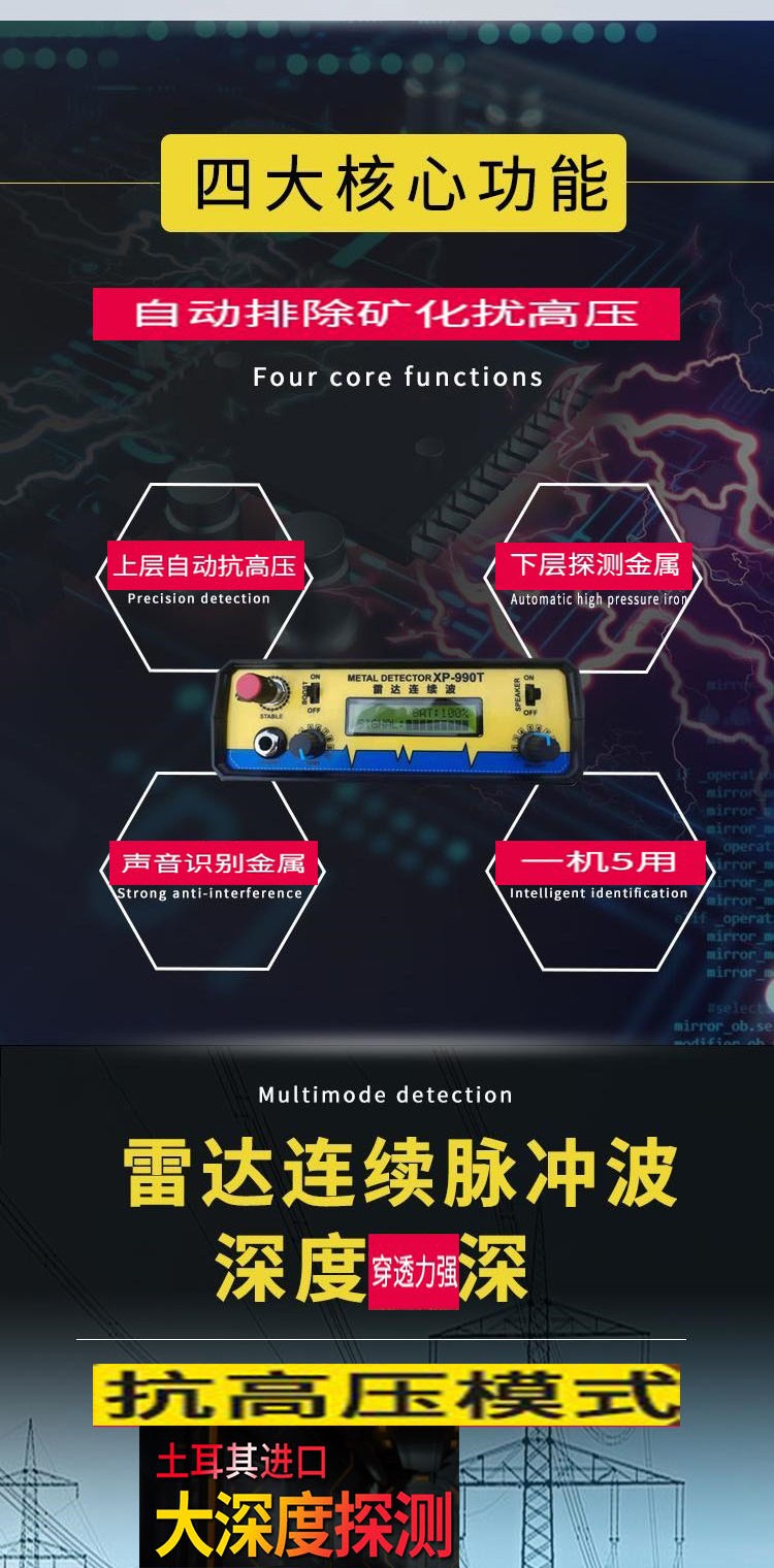 XP990T黑科技脈沖地下金屬探測器連續(xù)波立體框大深探寶器